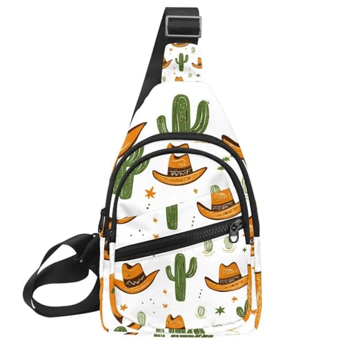 CHENZZZZ Sac à bandoulière occidental avec chapeau de cowboy et cactus avec bandoulière réglable, sac à bandoulière pour homme et femme, sac à dos à bandoulière pour voyage, cyclisme, travail, sport,