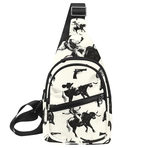 YYHWHJDE Cross Chest Bag Diagonally - Sac à bandoulière de qualité, durable et spacieux pour homme et femme cowboy noir chapeau bottes western imprimé, noir, taille unique, Noir , Taille unique