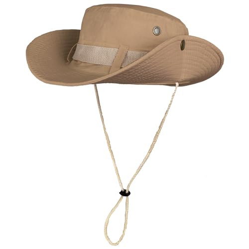ehsbuy Bob Homme Femme Chapeau Safari Cowboy Style Chapeau Soleil Imperméable Pêcheur Cap Pliable Randonnée Boonie Hat avec Mentonnier Réglable pour Outdoor