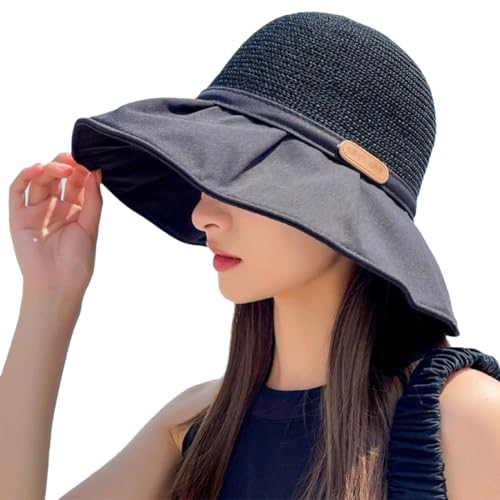 DIFLAX Femmes Chapeaux de Soleil Ajustable Chapeau de Paille Plage Soleil Bord Large, Chapeau de Paille Femme Chapeau de Paille Chapeau de Plage, Soleil Chapeau Femm Chapeau Cloche(Noir)