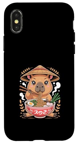 Joli Chapeau de Paille Asiatique Capybara en Mangeant des Ramen Coque pour iPhone X/XS