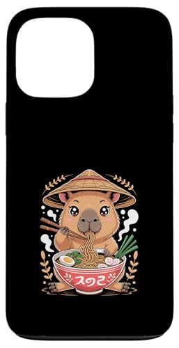 Joli Chapeau de Paille Asiatique Capybara en Mangeant des Ramen Coque pour iPhone 13 Pro Max