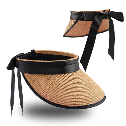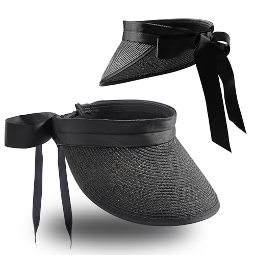 JJDreams Chapeau d'été Pliable Chapeau de Paille avec Fermeture Velcro et nœud Papillon Casquette à visière Bouclier Casquette de Baseball Bouclier Solaire pour Femmes,Noir