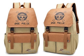 Sac à dos en toile polyester pour college One Piece 40*30*12cm - Chapeau de paille Luffy (Kaki)