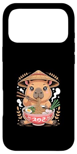 Joli Chapeau de Paille Asiatique Capybara en Mangeant des Ramen Coque pour iPhone 17 Pro Max