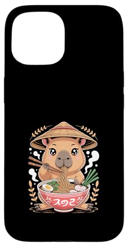 Joli Chapeau de Paille Asiatique Capybara en Mangeant des Ramen Coque pour iPhone 15