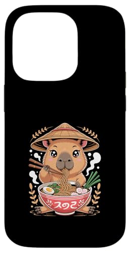 Joli Chapeau de Paille Asiatique Capybara en Mangeant des Ramen Coque pour iPhone 14 Pro