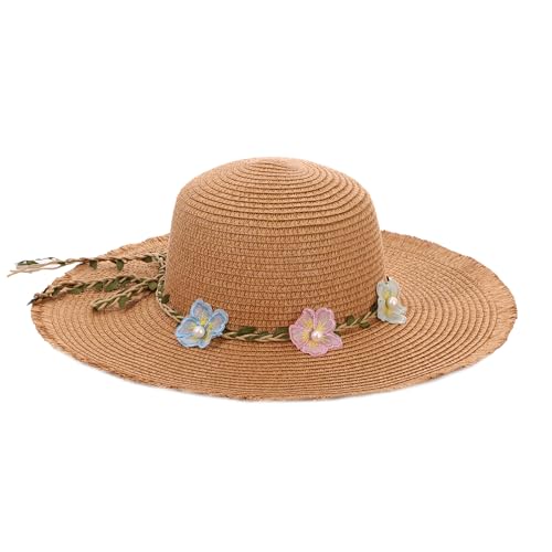 LY4U Chapeau de Paille pour Femmes, Protection Solaire UPF 50, de Plage d'été, Voyage Pliable pour Dames