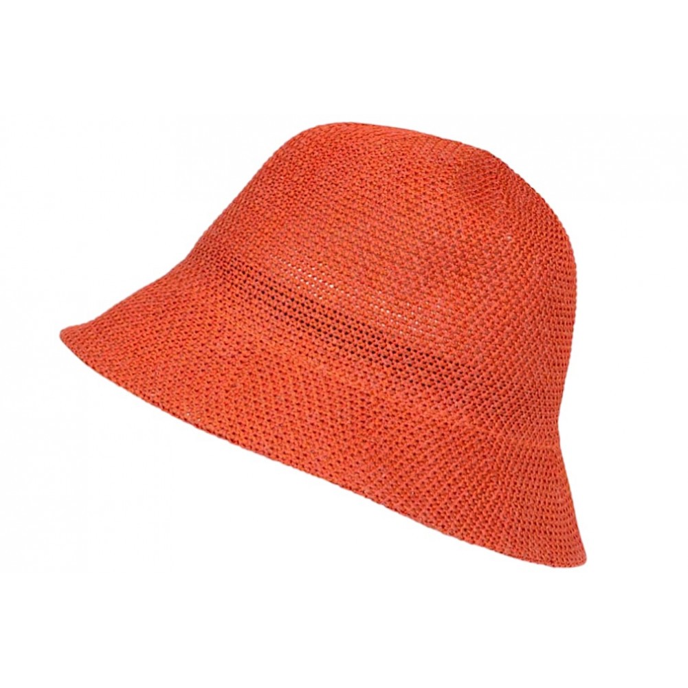 Chapeau Femme Été Orange Forme Cloche en Paille Tendance Coco-Taille unique