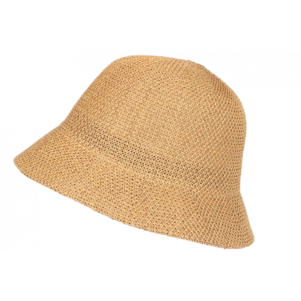 Chapeau Femme Été Marron Forme Cloche en Paille Tendance Coco-Taille unique
