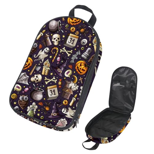 VAPOKF Sac de rangement pour ustensiles de camping de voyage, Halloween, tombe, citrouille, crâne, chapeau de sorcière, sac de rangement pour ustensiles de cuisine, pochette de rangement pour barbecue