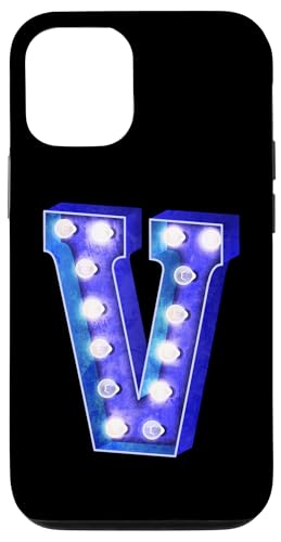 Lettre V pour chapiteau rétro Bleu Monogramme Initiale lumière Coque pour iPhone 13