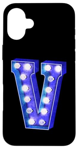 Lettre V pour chapiteau rétro Bleu Monogramme Initiale lumière Coque pour iPhone 16 Plus