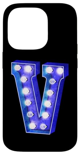 Lettre V pour chapiteau rétro Bleu Monogramme Initiale lumière Coque pour iPhone 14 Pro