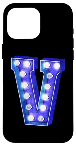 Lettre V pour chapiteau rétro Bleu Monogramme Initiale lumière Coque pour iPhone 16 Pro Max