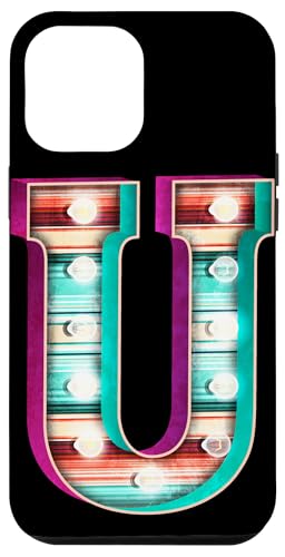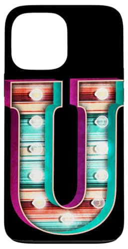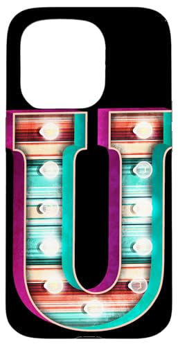 Lettre U - Panneau de chapiteau rétro avec Monogramme à Rayures Coque pour iPhone 13 Pro Max