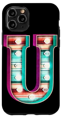 Lettre U - Panneau de chapiteau rétro avec Monogramme à Rayures Coque pour iPhone 11 Pro