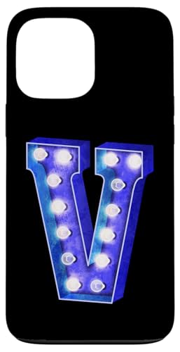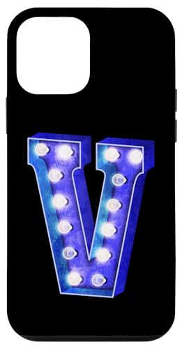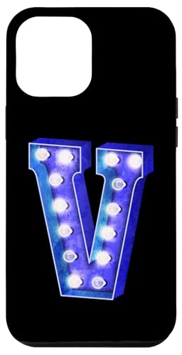 Lettre V pour chapiteau rétro Bleu Monogramme Initiale lumière Coque pour iPhone 13 Pro Max