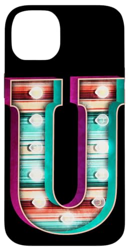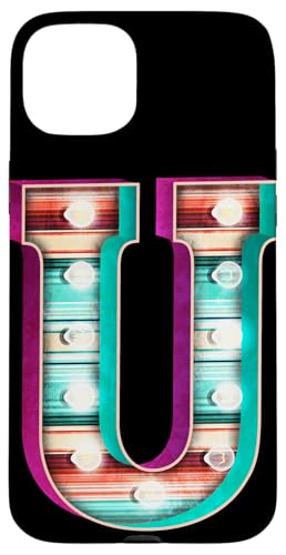 Lettre U - Panneau de chapiteau rétro avec Monogramme à Rayures Coque pour iPhone 15 Plus