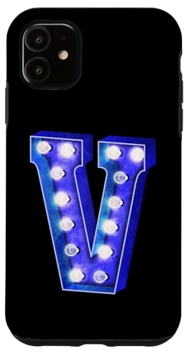 Lettre V pour chapiteau rétro Bleu Monogramme Initiale lumière Coque pour iPhone 11