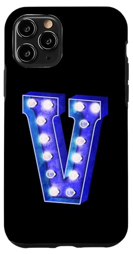 Lettre V pour chapiteau rétro Bleu Monogramme Initiale lumière Coque pour iPhone 11 Pro