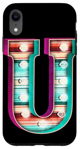 Lettre U - Panneau de chapiteau rétro avec Monogramme à Rayures Coque pour iPhone XR