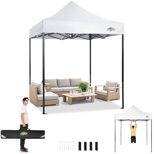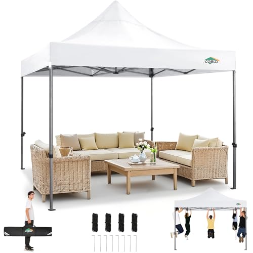 COBIZI Tente de Réception Pliante 2x2m Robuste sans Parois Latérales, Chapiteau de Fête Extérieur Commercial Facile à Monter, 3 Hauteurs Réglables avec Sac de Transport,Blanc