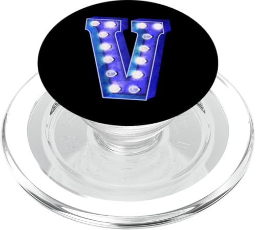 Lettre V pour chapiteau rétro Bleu Monogramme Initiale lumière PopSockets PopGrip pour MagSafe