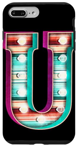 Lettre U - Panneau de chapiteau rétro avec Monogramme à Rayures Coque pour iPhone 7 Plus/8 Plus