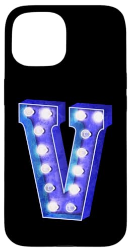 Lettre V pour chapiteau rétro Bleu Monogramme Initiale lumière Coque pour iPhone 15