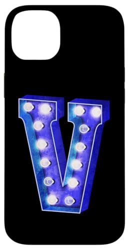 Lettre V pour chapiteau rétro Bleu Monogramme Initiale lumière Coque pour iPhone 14 Plus