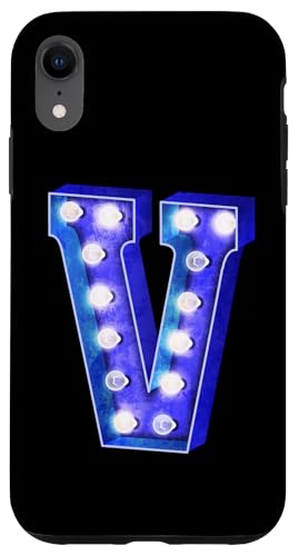 Lettre V pour chapiteau rétro Bleu Monogramme Initiale lumière Coque pour iPhone XR