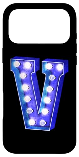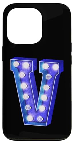 Lettre V pour chapiteau rétro Bleu Monogramme Initiale lumière Coque pour iPhone 13 Pro