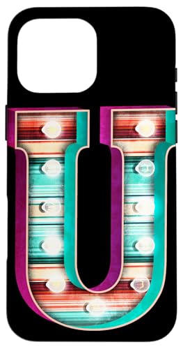 Lettre U - Panneau de chapiteau rétro avec Monogramme à Rayures Coque pour iPhone 16 Pro Max