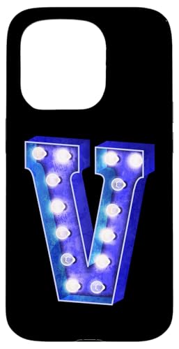 Lettre V pour chapiteau rétro Bleu Monogramme Initiale lumière Coque pour iPhone 15 Pro
