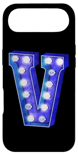 Lettre V pour chapiteau rétro Bleu Monogramme Initiale lumière Coque pour iPhone 17 Pro Max