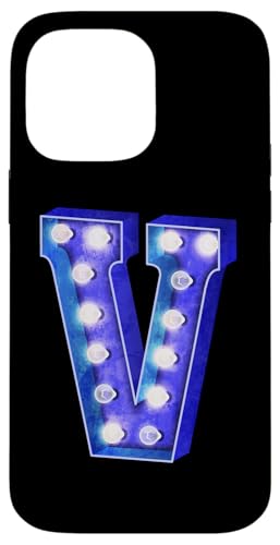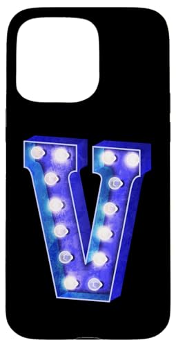 Lettre V pour chapiteau rétro Bleu Monogramme Initiale lumière Coque pour iPhone 15 Pro Max
