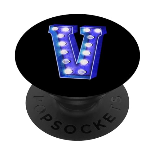 Lettre V pour chapiteau rétro Bleu Monogramme Initiale lumière PopSockets PopGrip Adhésif