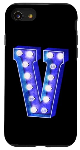 Lettre V pour chapiteau rétro Bleu Monogramme Initiale lumière Coque pour iPhone SE (2020) / 7/8