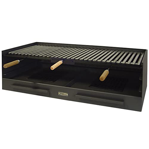 IMEX EL ZORRO, 71470-Tiroir Grille INOX 100 x 40 x 33 cm. Barbecue à Bois et Charbon de Bois Noir