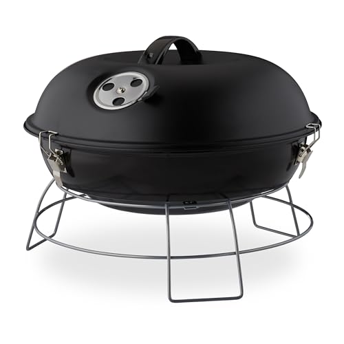 Relaxdays Noir Barbecue Rond, Portable, Couvercle, Pique Nique, Grosse Surface de Cuisson,Charbon de Bois d.36 cm