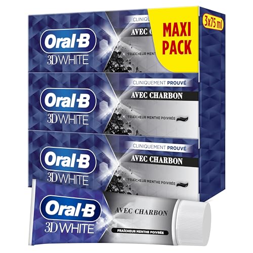 Oral-B Dentifrice Charbon 3D White Pour Effet Blancheur Dès Le Premier Brossage Des Dents, Pack De 3 x 75ml