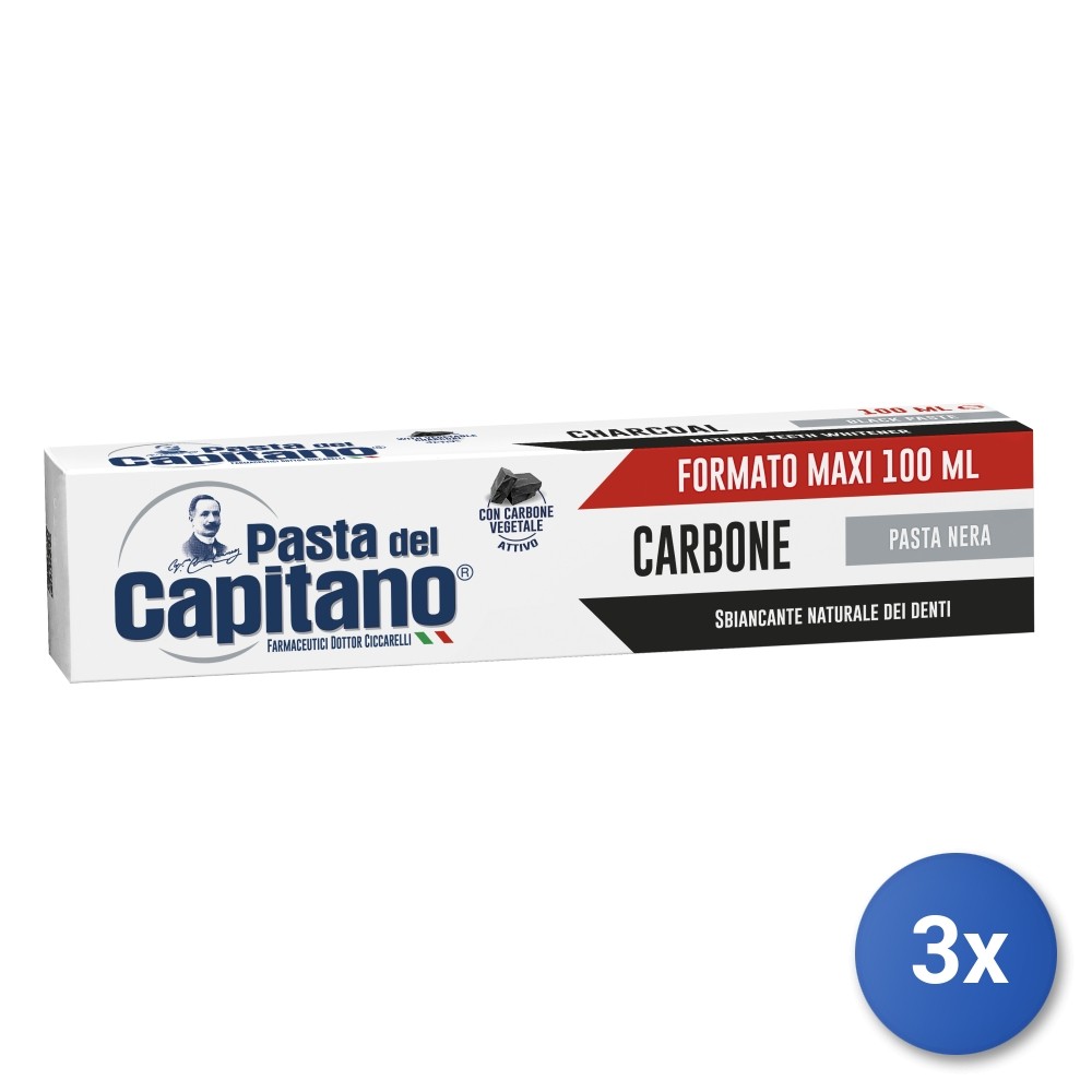 3X Dentifrice Capitano 100 Ml Charbon Actif Noir Fabriqué En Italie