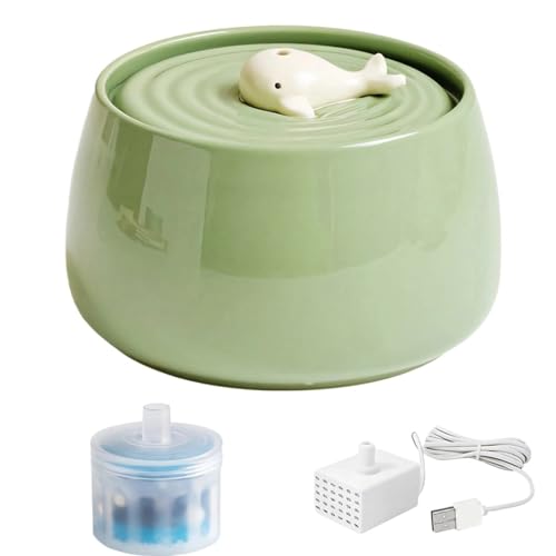 Fontaine d'eau en céramique pour chat en forme de baleine, distributeur d'eau pour animaux de compagnie avec double filtration et fonctionnement silencieux, filtre à charbon actif pour eau douce