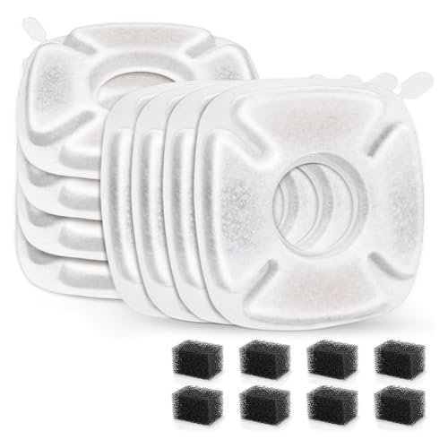 Filtre de fontaine à eau pour chat – 8 filtres de rechange pour fontaine pour animaux de compagnie avec éponges | Filtre de fontaine pour chat | Filtres à charbon de rechange pour eau propre