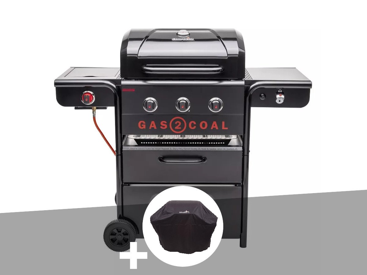 Barbecue hybride gaz et charbon gas2coal special edition - 3 brûleurs + housse de protection - char-broil