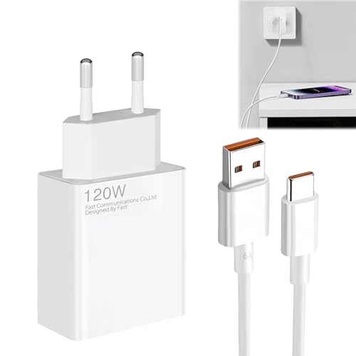 Hafiuege 120W USB Chargeur Chargeur pour Xiaomi 15 14 13 Ultra 14T 13T 12T 11T Pro Redmi Note K70 K60 K50, Chargeur Rapide USB Power Chargeurs Portables avec 6A Type C câble 1M