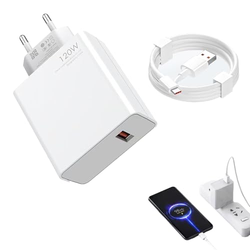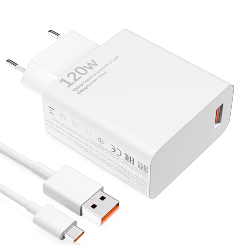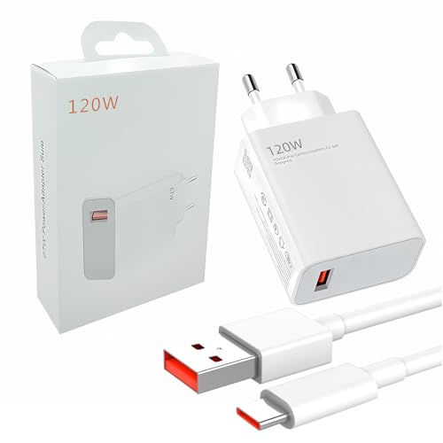 Chargeur USB C 120W, Rapide Turbo Hyper Charge Chargeur avec Câble USB-C 6A (1m) Compatible avec Xiaomi 15, 14T, 13T, 13 Ultra, 12T, 11T Pro, Redmi Note K70, K60, K50, 12, 11, Black Shark 3, 4, 5
