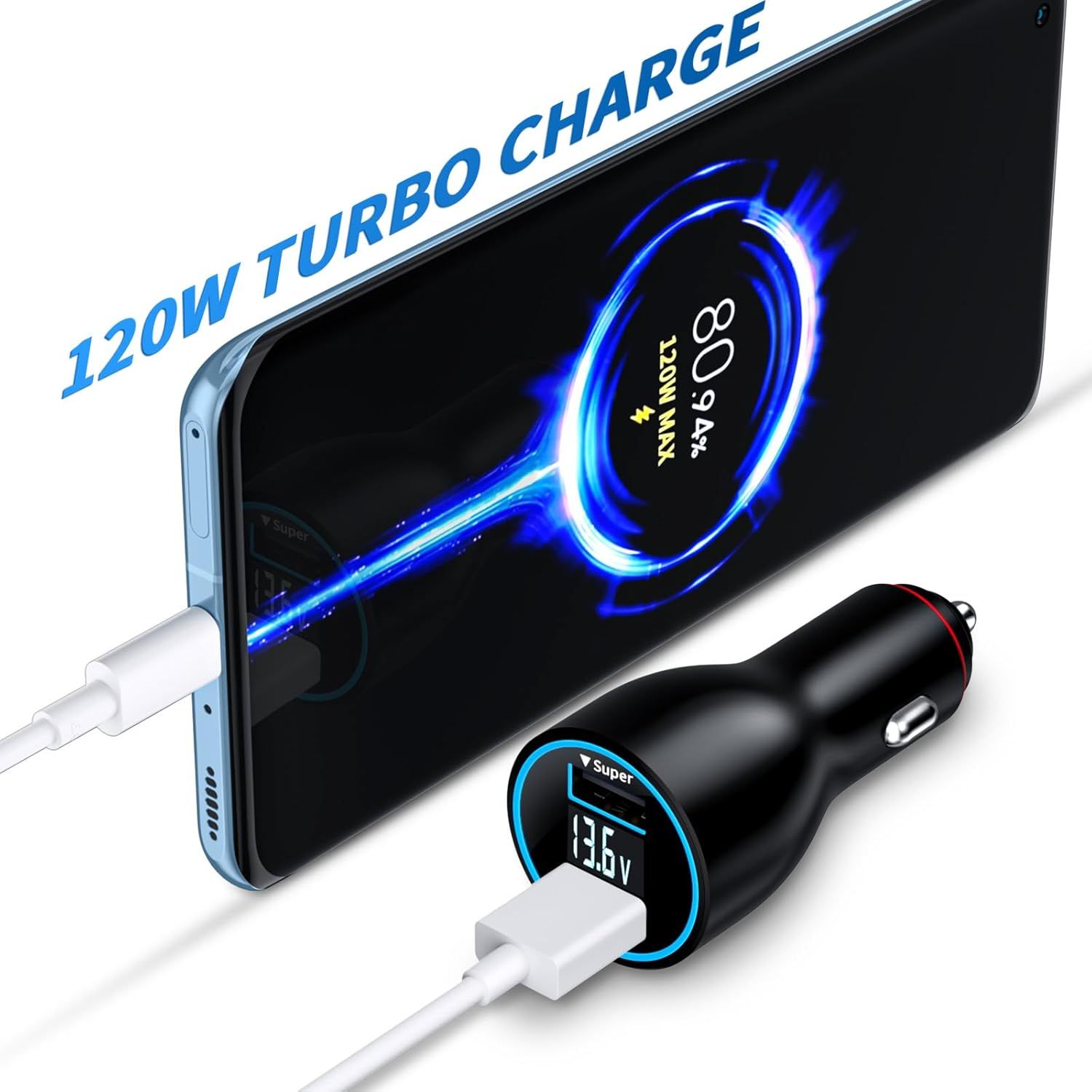 120W Chargeur Voiture Rapide Pour Redmi Note12 Pro+ 13 Pro 11 11S 12C,Chargeur Turbo Allume Cigare Usb Avec Câble Usb C Charge Turbo Pour Xiaomi 14 Ultra 13Pro 12T Pro Poco X5 Pro X6 Pro F4 Gt F5 Pr