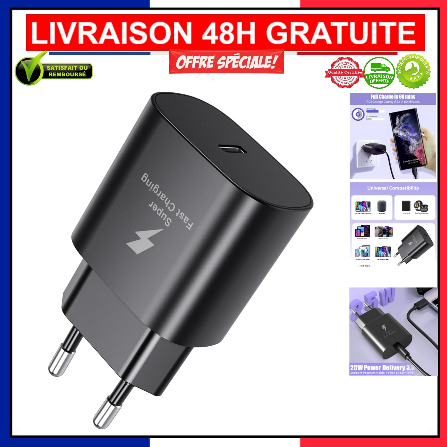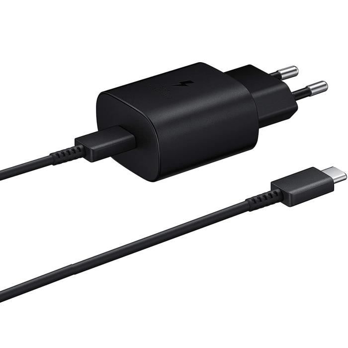 Chargeur Rapide 25W - Samsung - Compatible A13/A53/S22/Z Flip/Z Fold/S21 - Noir - Ultra rapide - 40g